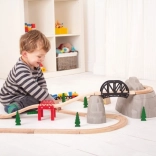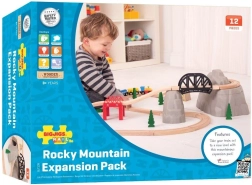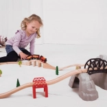 Ten drewniany zestaw kolejowy z górską trasą jest idealny dla małych odkrywców. Zawiera 12 części i umożliwia połączenie z innymi kolejkami, co wspiera ich wyobraźnię i koordynację podczas zabawy.