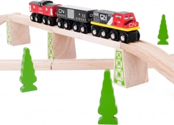 Drewniana kolejka CN jest kompatybilna ze wszystkimi drewnianymi kolejkami dostępnymi na rynku, co pozwala na nieskończone możliwości składania i rozszerzania.