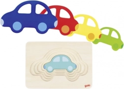 Odkryj zabawną i edukacyjną zabawkę dla najmłodszych: wielowarstwową drewnianą układankę w kształcie auta marki GOKI. Dzieci w formie zabawy ćwiczą małą motorykę, rozpoznawanie kolorów oraz rozumienie wielkości. Solidna płyta bazowa z rantem zapewnia stabilne wkładanie, a każdy samochodzik dokładnie pasuje do swojej warstwy.