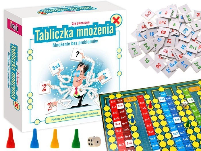Ta pomysłowa gra edukacyjna zamienia mnożenie w pasjonującą zabawę dla dzieci od 6 lat. Kolorystycznie kodowane kwadratowe elementy z przykładami i wynikami, duża plansza z siatką oraz mała plansza ramkowa pomagają dzieciom szybko zrozumieć zasady mnożenia i utrwalać je poprzez powtarzalną grę. Dzięki elementom rozgrywki (pionki i kostka) nauka ma tempo, a dzieci chętnie do niej wracają.