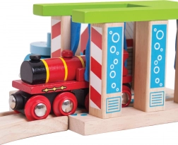 Myjnia płynnie łączy się z torami i pociągami BIGJIGS RAIL oraz innych znanych marek, więc łatwo rozbudujesz swój obecny zestaw.