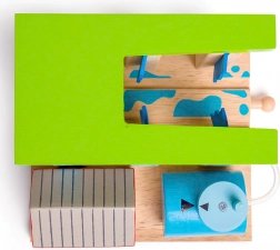 Ustaw słupki tak, aby pociąg tylko przejechał, albo by szczotki go „umyły”. Dzieci pokochają zmienianie scenariuszy i poćwiczą małą motorykę.