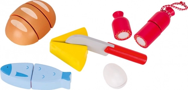 Zabawny drewniany zestaw dla małych kucharzy wprowadza bezpieczne pierwsze krojenie. Zawiera drewniany nóż i pięć przysmaków połączonych rzepem, które dzieci mogą wielokrotnie rozdzielać i ponownie składać. Wspiera małą motorykę, koordynację oko–ręka oraz zabawy w odgrywanie ról w dziecięcej kuchni.