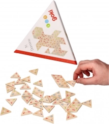 Tri-Domino od Goki to nietypowe podejście do klasycznej gry, której celem jest potrojenie zabawy! Gracze mają za zadanie układać trójkątne elementy tak, aby powstał duży trójkąt o czterokrotnej lub pięciokrotnej długości boku.