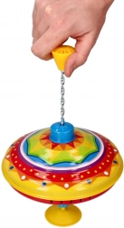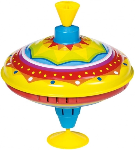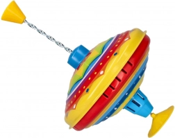 Tradycyjny metalowy bąk Tęcza jest uwielbiany przez dzieci za prostotę i frajdę, jaką daje. Stabilna podstawa sprawia, że bąk się nie przewraca i łatwo się kręci na różnych powierzchniach.