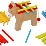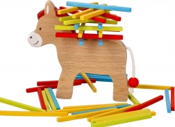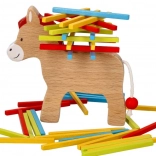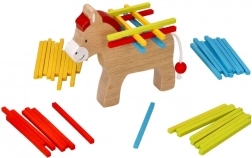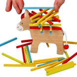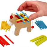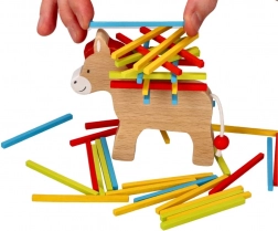 Gra pomaga rozwijać umiejętności motoryczne dzięki precyzyjnemu układaniu patyczków na osiołku.