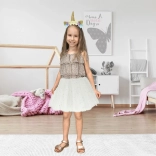 Elastyczny pas spódniczki łatwo dopasowuje się do sylwetki dziecka, a materiał jest lekki i odpowiedni do długiego noszenia.