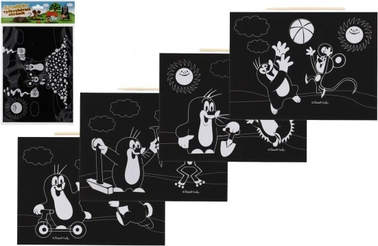 Ciesz się kreatywną zabawą z wydrapywanką z motywem Krecika i jego przyjaciół. Za pomocą drewnianej szpatułki odsłaniasz ukryte, kolorowe warstwy.