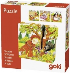 Dziecięce drewniane klocki z bajkami od Goki przynoszą radosne układanie i pierwsze opowiadanie historii. Z 9 klocków ułożycie 6 kolorowych scen z ulubionych klasyków – na przykład Czerwony Kapturek, Królewna Śnieżka i siedmiu krasnoludków, Śpiąca Królewna, Jaś i Małgosia czy Kopciuszek. Każde obrócenie klocka odsłania nowy fragment obrazka, a dzieci ćwiczą logikę i cierpliwość.