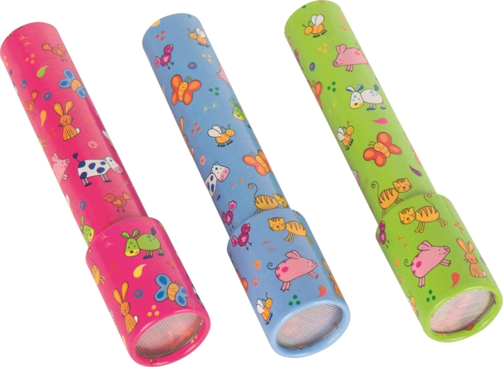 Kalejdoskop Goki Na farmie to ponadczasowa zabawka, która wspiera dziecięcą wyobraźnię oraz postrzeganie kolorów i kształtów. Podczas obracania wewnątrz powstają ciągle nowe i unikalne wzory, które fascynują i uspokajają dzieci. Dzięki solidnemu wykonaniu i przyjaznemu, farmerskiemu motywowi jest idealnym wyborem do zabawy w domu i w podróży.