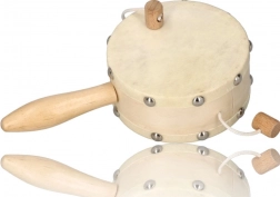 Bębenek wykonany jest z naturalnego drewna, co zapewnia jego jakość i bezpieczeństwo dla dzieci.