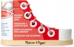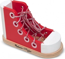Drewniany but do sznurowania MELISSA & DOUG pomaga dzieciom od 3. roku życia opanować ważną umiejętność – samodzielne wiązanie butów. Dzięki stabilnej drewnianej konstrukcji, większej liczbie oczek i tekstylnemu sznurowadłu dzieci mogą ćwiczyć różne sposoby przewlekania i węzłów, od prostego przełożenia aż po kokardkę.