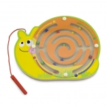 Drewniany ślimak w żywych kolorach z bezpiecznym mechanizmem magnetycznym przyciąga uwagę każdego dziecka.