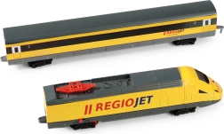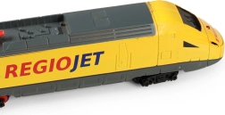 Model pociągu RegioJet został starannie zaprojektowany z dbałością o szczegóły, w tym autentyczne kolory i oznaczenia.