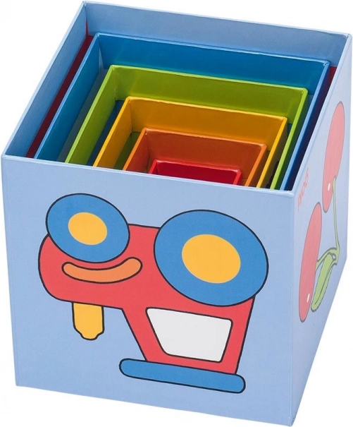 - Różnorodność zabawy – układanie w wysokość i wkładanie elementów jeden w drugi.
