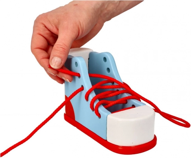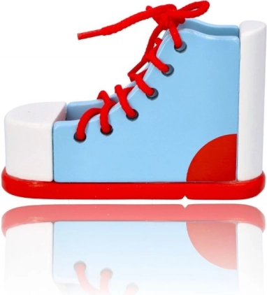 Ten but do sznurowania pomaga dzieciom poprawić koordynację palców i wzmacnia ich motorykę małą.