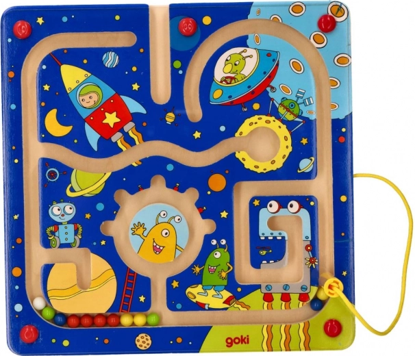 Rozwijaj umiejętności swoich dzieci dzięki tej kolorowej magnetycznej grze Kosmos. Gra zawiera magnetyczną pałeczkę na sznurku, która pomaga twoim dzieciom poruszać kuleczkami po labiryncie.