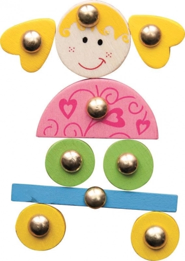 Dzieci mogą przybijać poszczególne kształty i tworzyć postacie, pojazdy oraz całe opowieści. Budowanie wspiera wyobraźnię i logiczne myślenie.