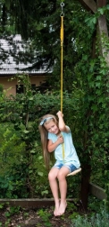 Montaż jest szybki – talerz zawiesisz za metalowy pierścień na linie nośnej. Dla płynnego obracania polecamy hak obrotowy (nie jest częścią zestawu). Całkowita długość liny wraz z huśtawką to 180 cm, co zapewnia optymalną wysokość zawieszenia dla bezpiecznej zabawy.