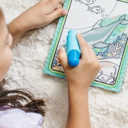 Wodna książka do malowania została zaprojektowana tak, aby zapewniała powtarzalną zabawę. Wystarczy napełnić pióro wodą i obserwować, jak obrazy ożywają przy zetknięciu z wodą. Po wyschnięciu dzieci mogą zacząć od nowa.