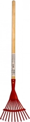 Wytrzymała metalowa część do skutecznego grabienia oraz przyjemny w dotyku drewniany uchwyt dla wygodnego chwytu nawet przy dłuższej pracy.