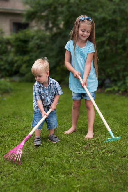 Całkowita długość ok. 80 cm jest idealna dla dzieci od 3 lat. Kolor grabi może się różnić – zdjęcia poglądowe służą do prezentacji, aktualna kolorystyka zależy od stanu magazynowego.