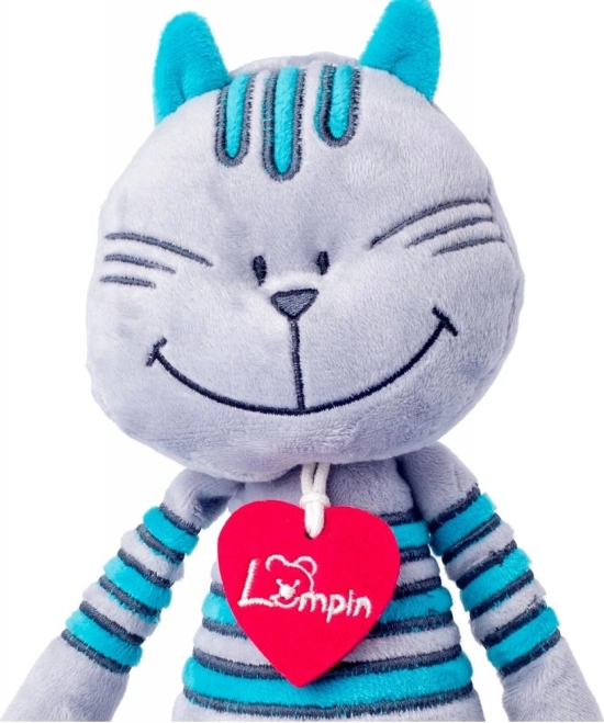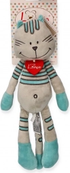Pluszowy kocur Lewis to idealny towarzysz do przytulania i spania. Jego miękkie i delikatne wykonanie zapewnia komfort, a turkusowe paski i filcowe serduszko nadają oryginalny wygląd, który pokochają dzieci.