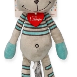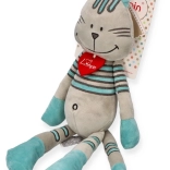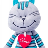 Uroczy pluszowy kocur Lewis pochodzi z Austrii i zachwyca swoim szarym futerkiem z turkusowymi paskami. Ma długie łapki, szeroki uśmiech i na szyi ozdobne filcowe serduszko. Jest bardzo miękki w dotyku i odpowiedni dla dzieci już od urodzenia. Dla łatwej pielęgnacji zabawkę można prać ręcznie w 30 °C.