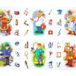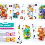 Ilustrowane sceny z zawodami i ich akcesoriami zachęcają do wielokrotnej zabawy i rozwijają słownictwo.