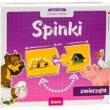 Gra Spinky – zwierzęta oferuje proste i wciągające uczenie się poprzez zabawę. Dzieci dopasowują dwuelementowe kartonowe puzzle ze zwierzętami i pasującymi do nich przedmiotami. Dzięki wyraźnym ilustracjom i solidnemu wykonaniu wzmacniają rozumienie zależności, rozpoznawanie kształtów oraz koordynację oko–ręka.