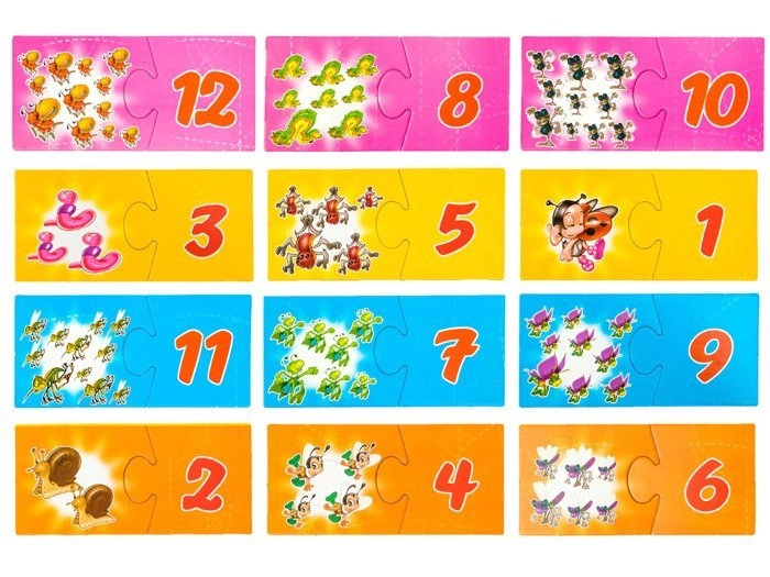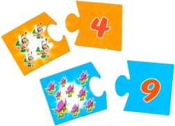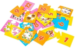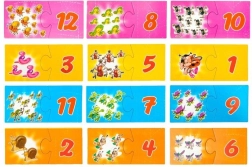 Dzieci wybierają elementy układanki i łączą je w pary: liczba zwierząt + liczba, która jest ich odpowiednikiem. Gra pamięciowa rozwija analizę i syntezę wzrokową, wspiera funkcje asocjacyjne oraz rozpoznawanie obiektów.