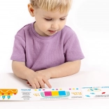 Ta oryginalna aktywizująca książeczka w formie harmonijki jest pełna pomysłowych aktywności, które wspierają pierwsze umiejętności – od wskazywania palcem, przez prowadzenie po trasie, aż po trening koordynacji oko–ręka. Dzięki wesołym obrazkom i krótkim poleceniom dzieci w naturalny sposób ćwiczą koncentrację i motorykę małą.