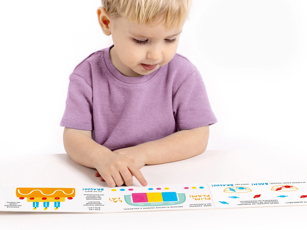 Wspólne oglądanie to świetny sposób na spędzanie czasu: czytaj na głos napisy, nazywaj to, co widzisz, i zachęcaj dziecko do aktywnego udziału. Książeczka została zaprojektowana tak, aby bawiła, a jednocześnie rozwijała umiejętności adekwatne do wieku.