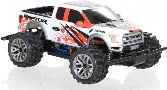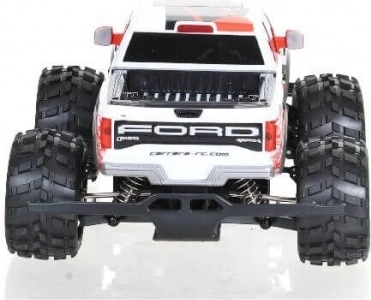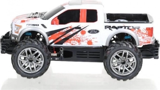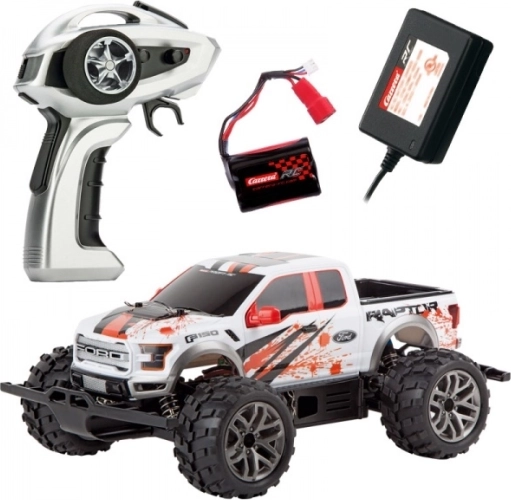 RC auto Carrera PROFI FORD F‑150 RAPTOR w skali 1:18 zostało zaprojektowane z myślą o prędkości, wytrzymałości i precyzyjnej kontroli. Cyfrowo proporcjonalne sterowanie zapewnia płynne dodawanie gazu i czułe skręcanie, a 4WD, amortyzatory olejowe i wysokie zawieszenie gwarantują stabilność i trakcję na różnych nawierzchniach. Funkcyjne przednie i tylne światła dodatkowo zwiększają wrażenia z jazdy.