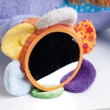 Pluszak zawiera lustrzane elementy oraz miękkie akcesoria, które wspierają interaktywną zabawę i rozwój samoświadomości.