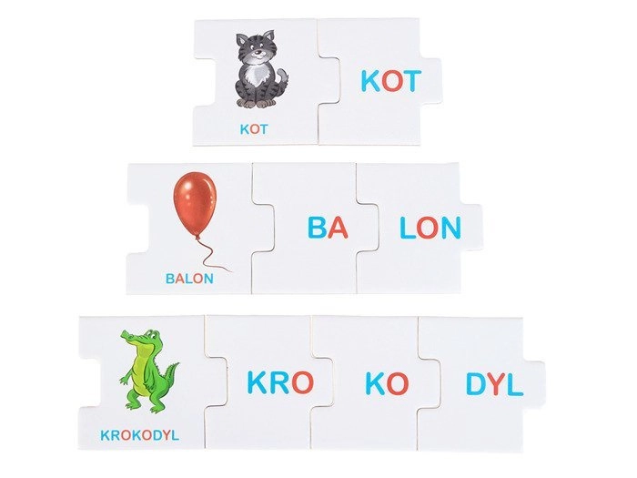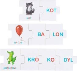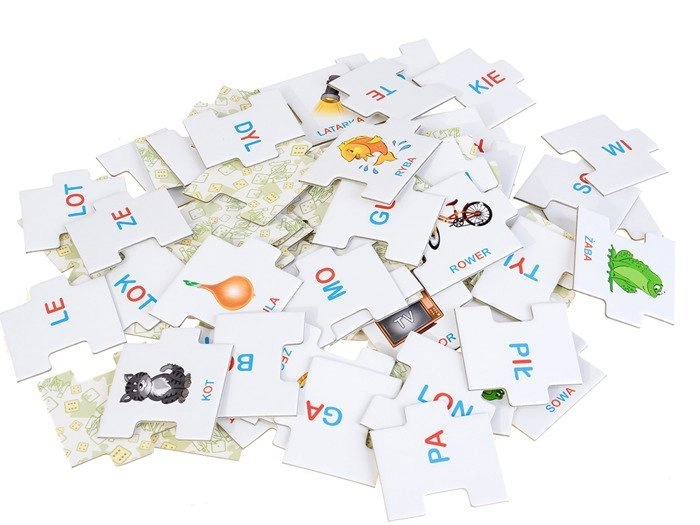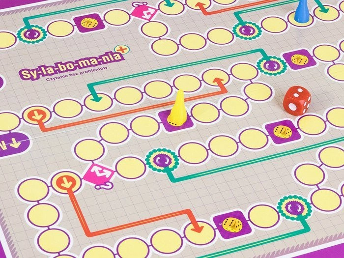 Gracze poruszają się po planszy w kierunku mety i rozwiązują zadania: z losowo wyciągniętych sylab układają poprawne słowa. W trybie układanki dzieci dopasowują sylaby do obrazków i tworzą nazwy przedmiotów. Dzięki temu w formie zabawy utrwalają podstawy czytania, poszerzają słownictwo i budują pewność siebie w pracy z tekstem.
