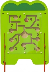 Dzięki solidnej drewnianej konstrukcji oraz bezpiecznym, intensywnym kolorom tablica nadaje się do codziennego użytku w przestrzeniach publicznych i domowych. Dwa magnetyczne rysiki umożliwiają jednoczesną zabawę dwojga dzieci i wspierają współpracę oraz komunikację w grupie. Numery przy magnetycznym labiryncie pomagają w nauce liczb i porządkowania.