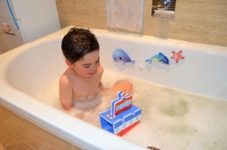- Zabawa w wannie i pod prysznicem: elementy przylegają do płytek i ścian wanny