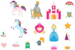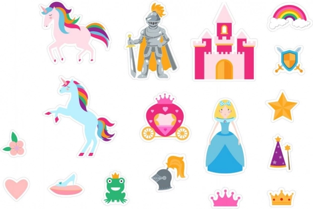 Wesołe naklejki kąpielowe z lekkiej pianki zamienią każdą kąpiel w świetną zabawę. Dzieci mogą tworzyć własne bajkowe opowieści z jednorożcami, księżniczkami i magicznymi zamkami. Materiał jest bezpieczny do wody i po zwilżeniu dobrze trzyma się gładkich powierzchni.