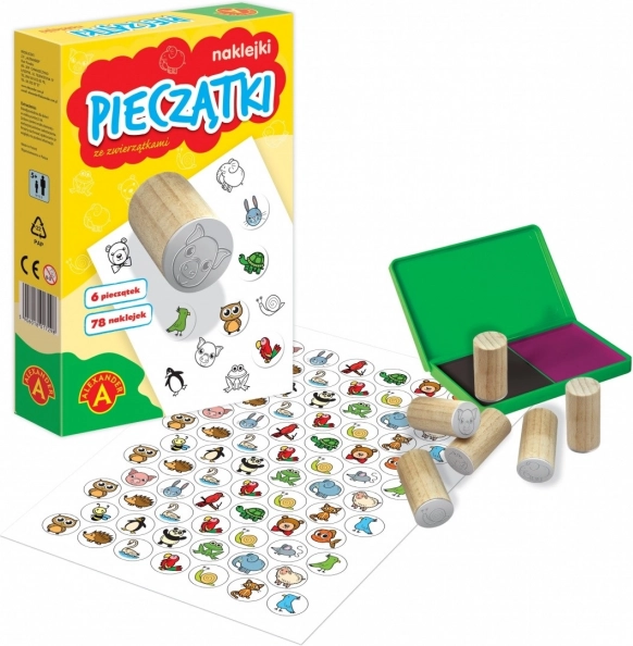 Drewniane stempelki dinozaury 5+1 z poduszką, 3 × 3 cm