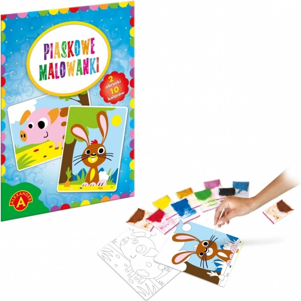 Artystyczna zabawa polega na stopniowym odsłanianiu poszczególnych wyciętych części obrazka tak, aby odkryć lepka powierzchnię wybranego fragmentu. Każdy odsłonięty fragment posypuje się piaskiem w kolorze zgodnym ze wzorem przedstawionym w instrukcji i na pudełku.