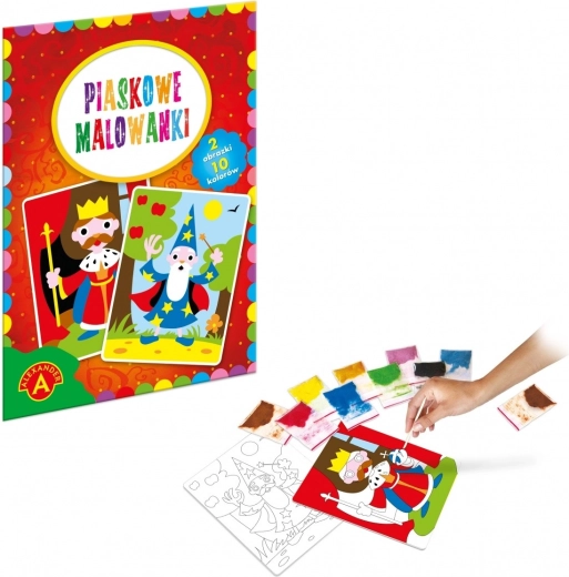 Artystyczna zabawa malowaniem piaskiem polega na stopniowym odkrywaniu poszczególnych, wyciętych elementów obrazka, aby odsłonić klejącą powierzchnię wybranego fragmentu. Każdy odsłonięty fragment posypuje się piaskiem w kolorze zgodnym ze wzorem przedstawionym w instrukcji oraz na pudełku.