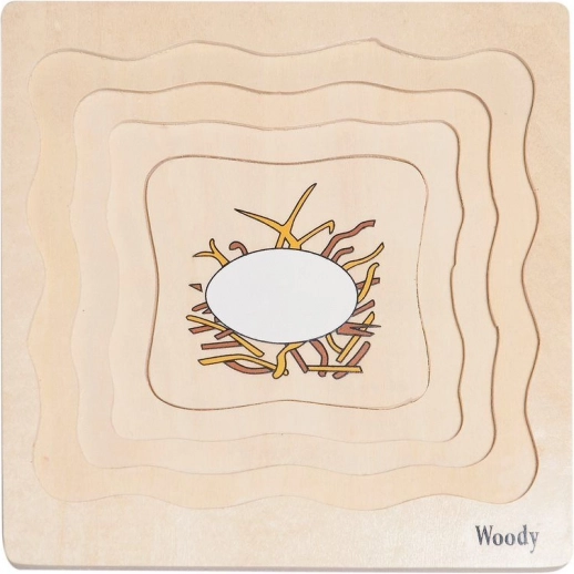 Te sprytne warstwowe puzzle w prosty sposób przedstawiają dzieciom cykl życia kurki. Poszczególne warstwy i elementy na drewnianej podstawie zachęcają do naturalnego odkrywania, sortowania i układania. Dzięki solidnemu drewnu i przyjemnym kolorom zabawka jest trwała, bezpieczna i zachęca do wielokrotnego używania.