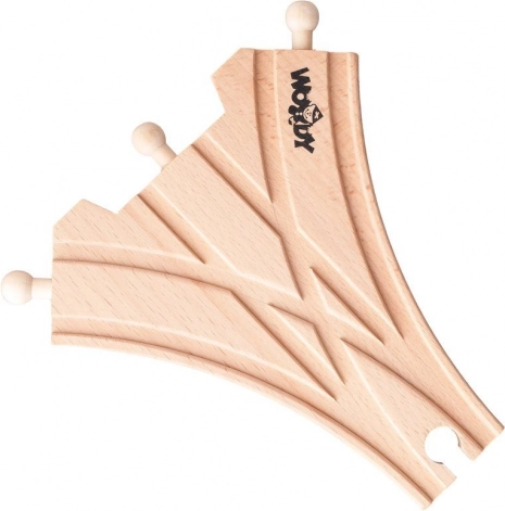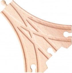 Kolejowy rozjazd X to idealny element dla małych budowniczych kolejek. Umożliwia krzyżowanie torów i dodaje do zabawy więcej możliwości prowadzenia pociągów i planowania przejazdów. Dzięki prostemu systemowi złącz łatwo podłączysz go do pozostałych elementów drewnianych torów.