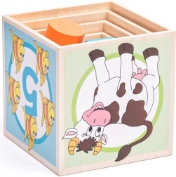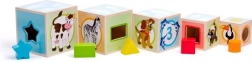 Każdy element ma kolorowe otwory oraz ilustracje zwierzątek i liczb. Dzieci w naturalny sposób ćwiczą rozpoznawanie kształtów i kolorów oraz pierwsze liczenie.