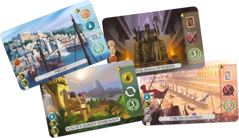 Mechanika gry oferuje innowacyjny sposób wyboru kart – gracze mogą wybierać jedynie karty, które nie są zakryte innymi, co wnosi strategiczne możliwości i wymaga starannego planowania. Gra zawiera bogatą zawartość, w tym 66 kart budynków, 7 kart gildii i 12 kart cudów.