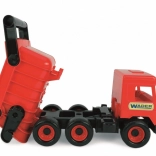 Czerwona wywrotka Wader Middle Truck uszczęśliwi każde dziecko, które uwielbia przygody. Ten wysokiej jakości plastikowy samochód ciężarowy ma sześć kół, co zapewnia stabilność i trwałość nawet w trudnych zabawach.