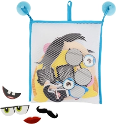 - 35 piankowych naklejek (elementy twarzy i akcesoria), worek-siatka z przyssawkami