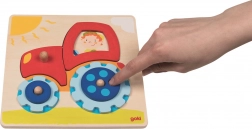 Drewniane puzzle wkładanki z obrazkiem traktora to idealna pierwsza układanka dla najmłodszych. Dzięki precyzyjnie frezowanym konturom na podstawie dzieci łatwo znajdują właściwe miejsce dla każdego elementu i z radością kończą obrazek. Wysoka jakość wykonania marki GOKI gwarantuje trwałość i bezpieczną zabawę.