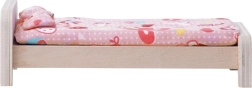 - Zawiera miniatury mebli, takie jak łóżko i zestaw do jadalni.